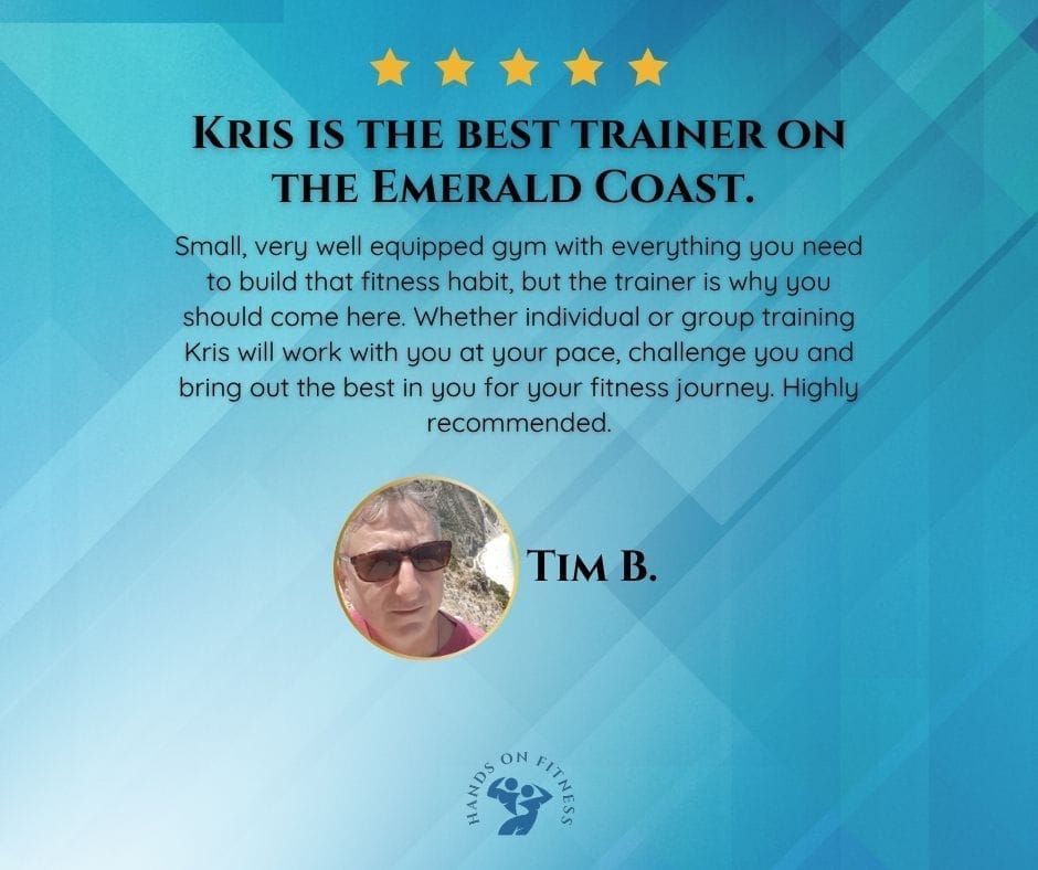 Tim’s words highlight what sets Hands On Fitness apart: a personalized, supportive approach that helps every client progress safely and confidently.